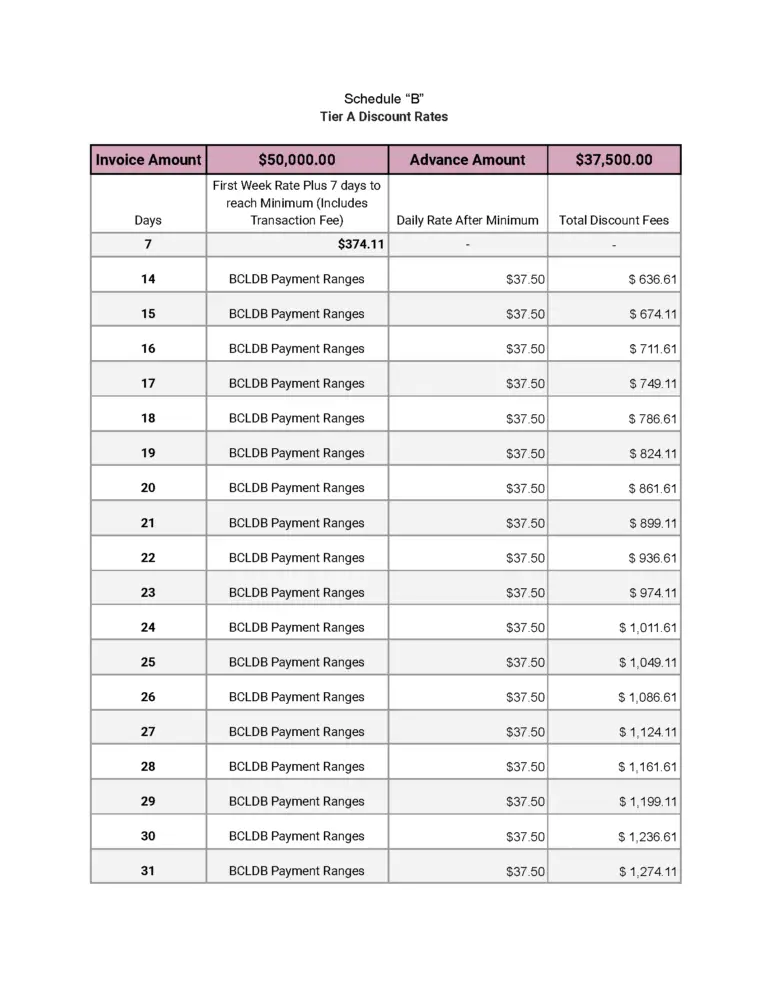 Tier "A" rate sheet with All-In Daily Fee schedule